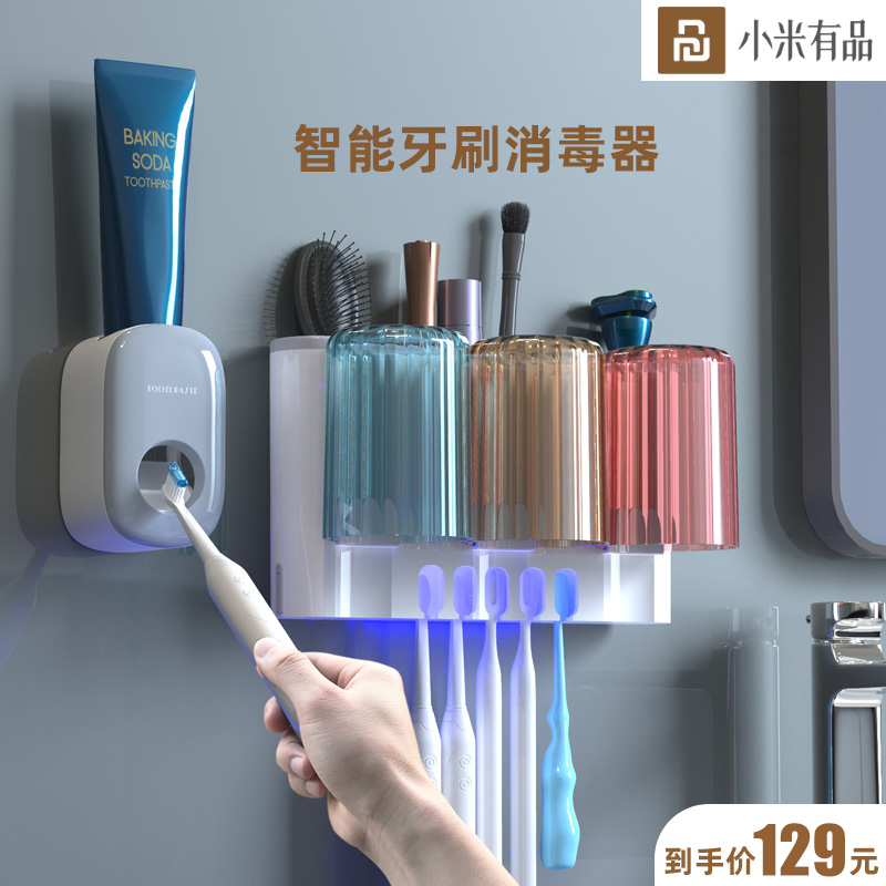 名排牙刷消毒器紫外线牙杯杀菌壁挂式2人电动牙膏置物架小米轻奢