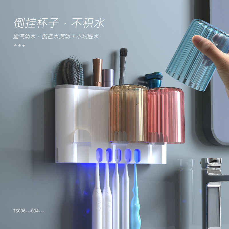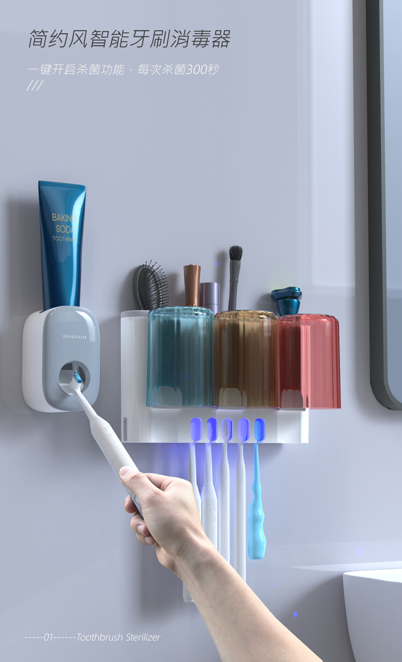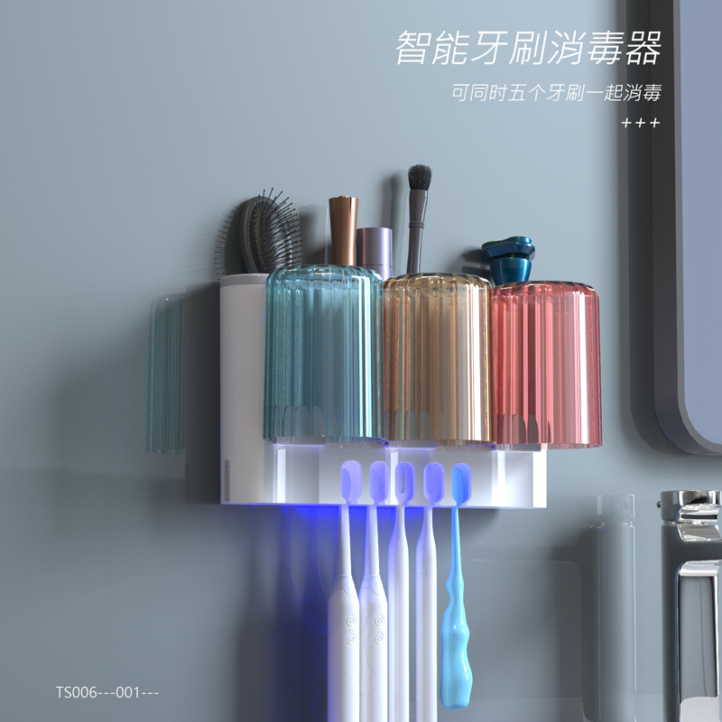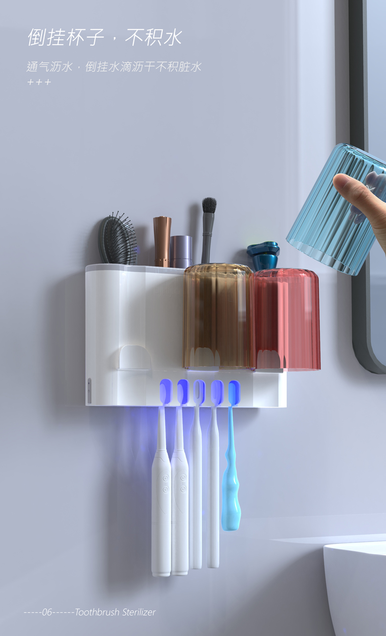 智能牙刷消毒器紫外线消毒杀菌带杯子置物架