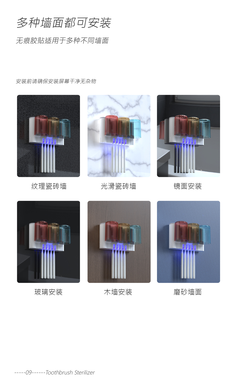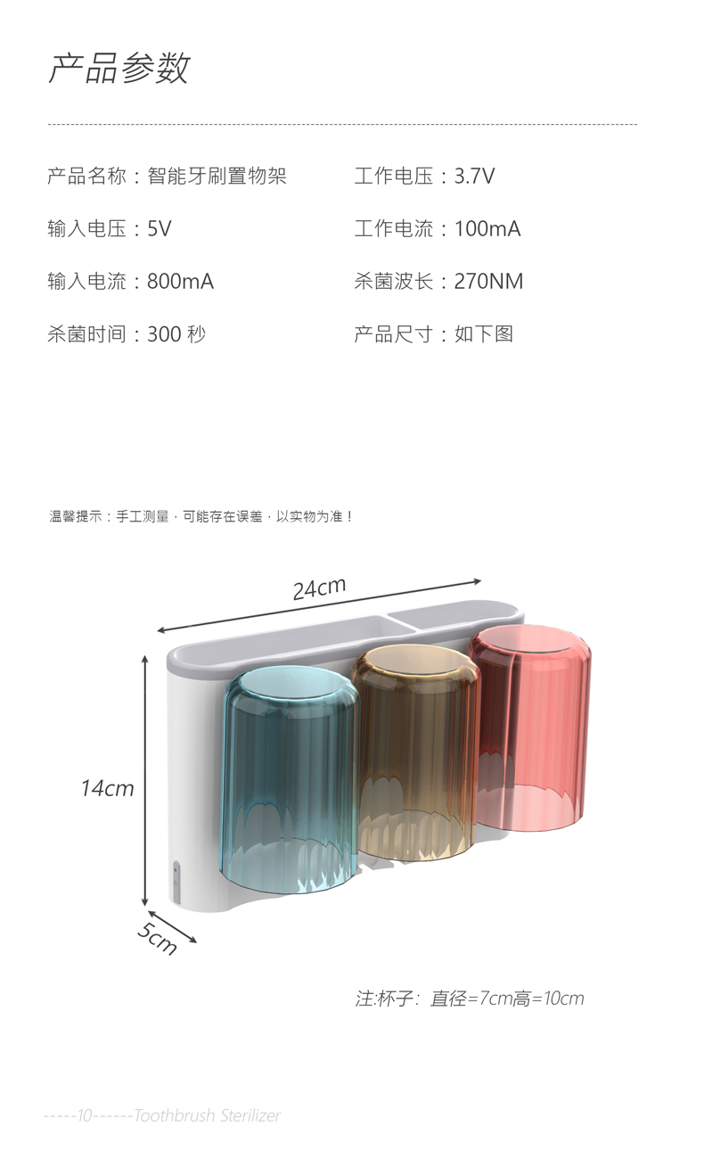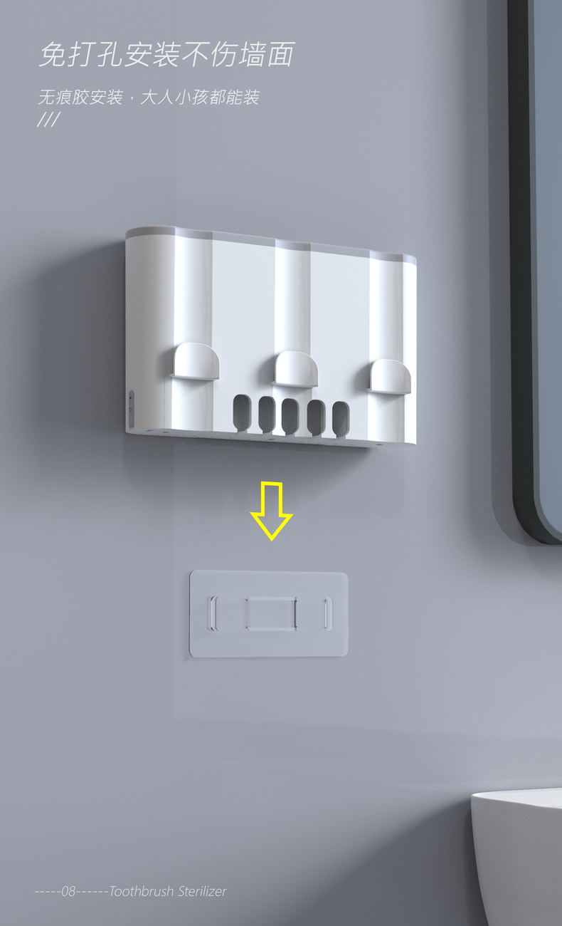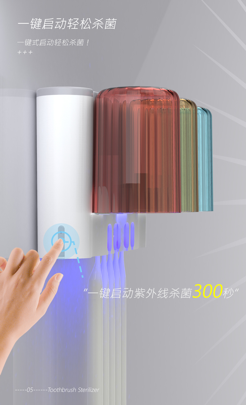 智能牙刷消毒器紫外线消毒杀菌带杯子置物架