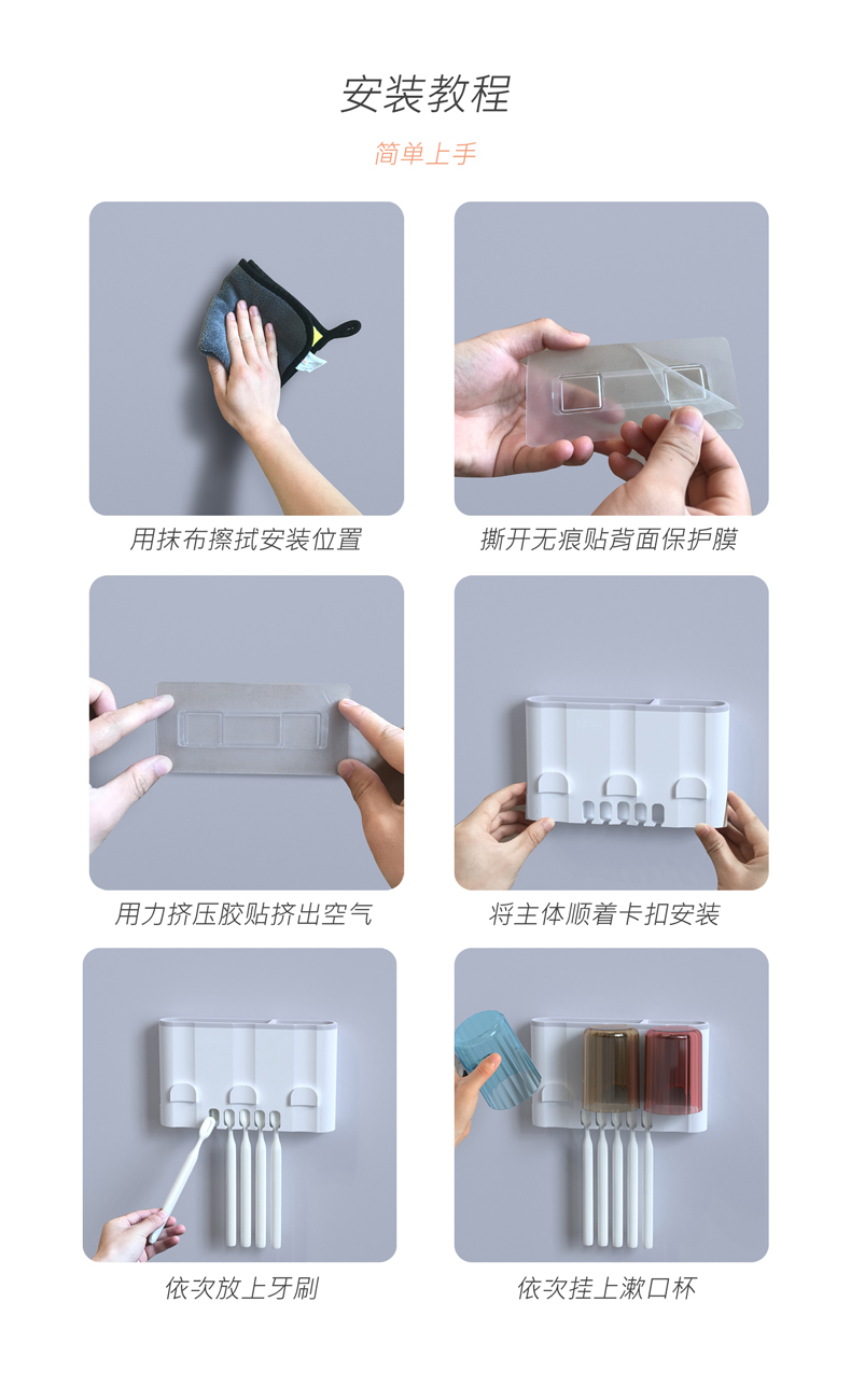 名排牙刷消毒器紫外线牙杯杀菌壁挂式2人电动牙膏置物架小米轻奢